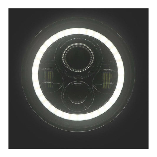 Head Light for Bullet 7 Inch with Full DRL Ring Headlight for Royal Enfield Bullet/Classic 350/500 (Imported)