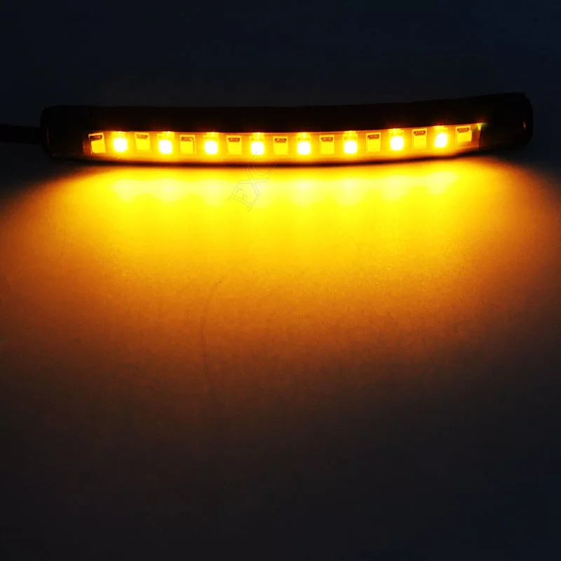 2pcs/set Motorcycle 17LED Flexible Strip Light Turn Signal Indicator White+Amber